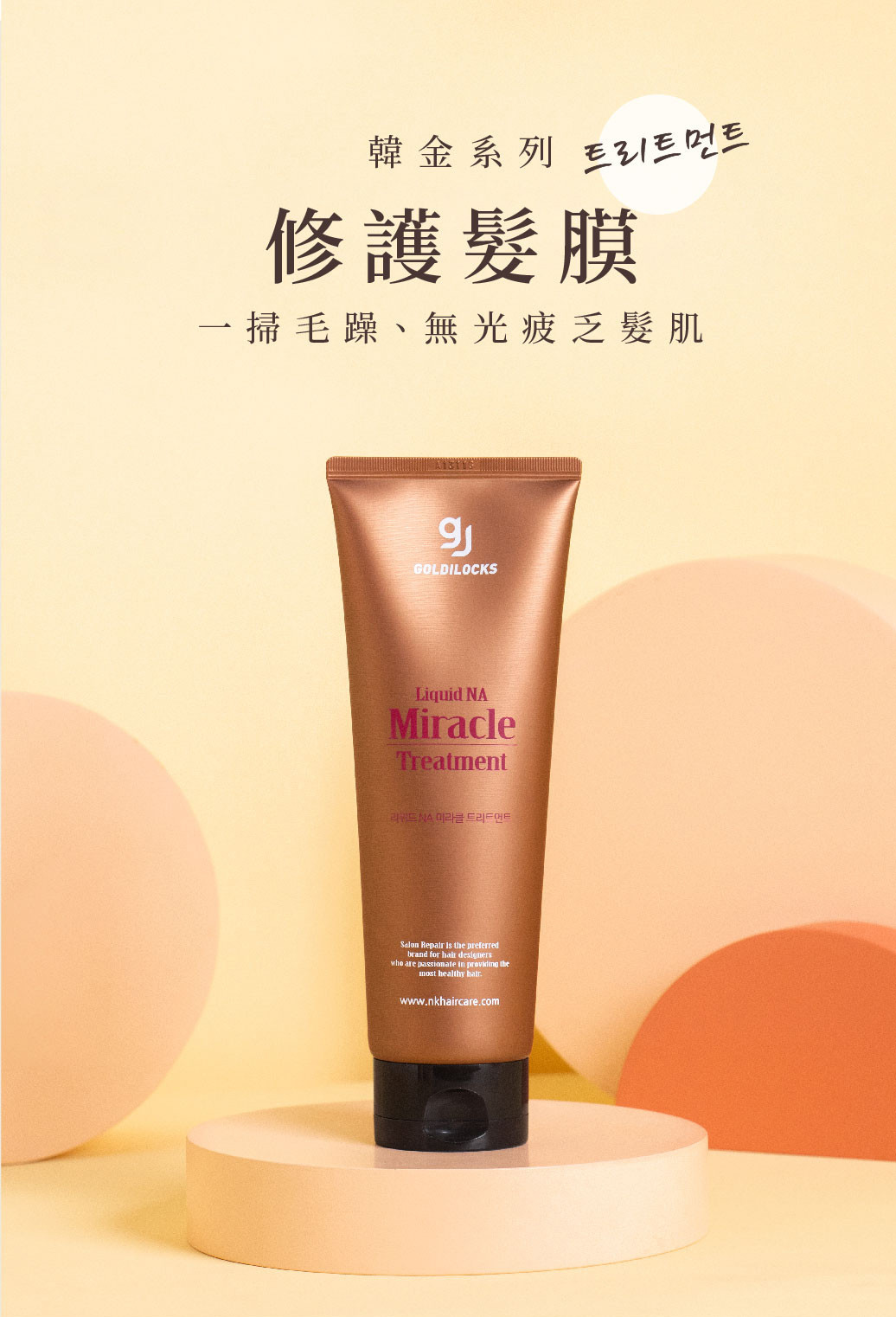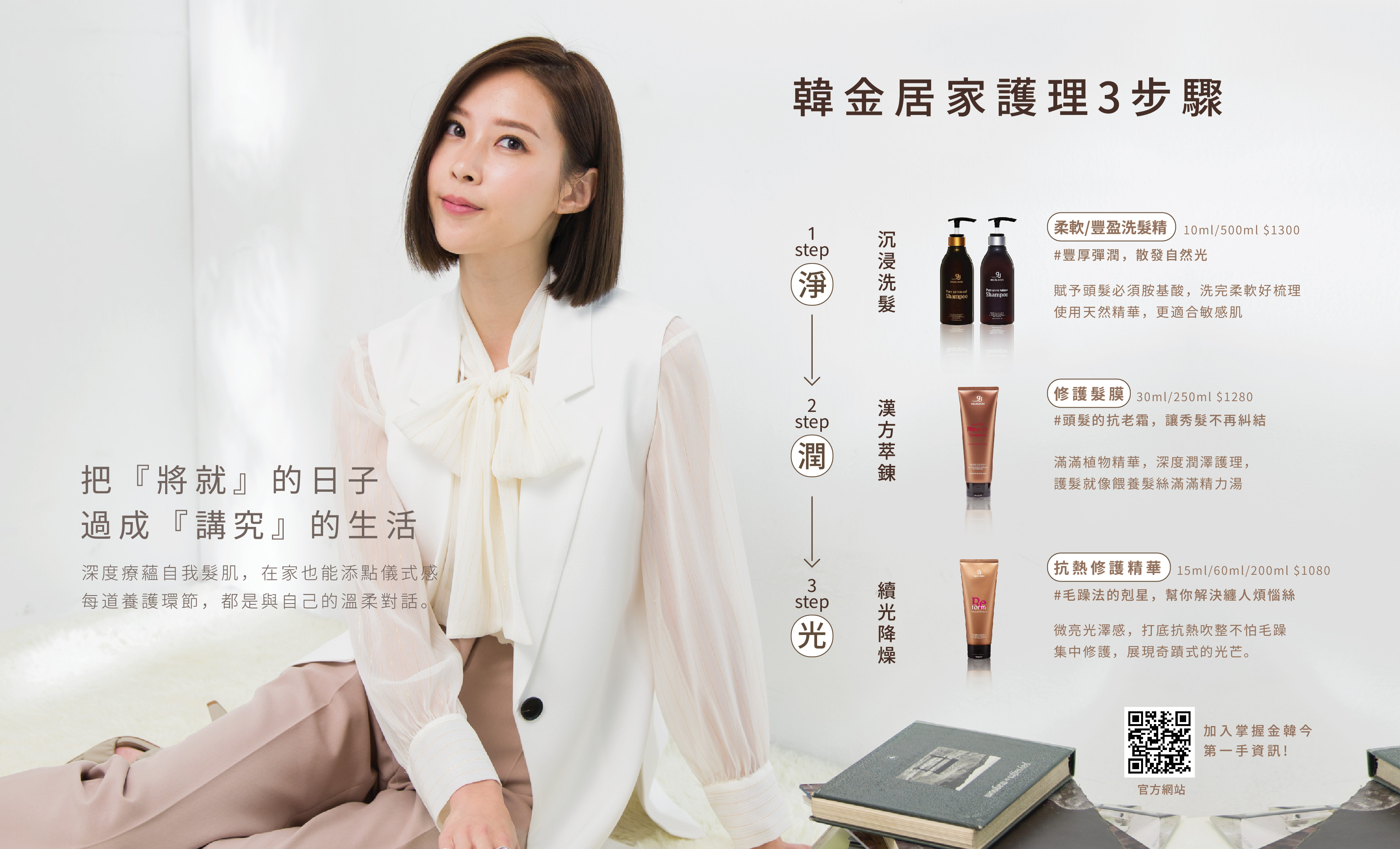 4. 請在照片中帶入完整的使用順序建議: 韓金.修護髮膜(需沖洗) ► 韓金抗熱修護精華(免沖洗),同步搭配文字敘述,比例分配各半即可。