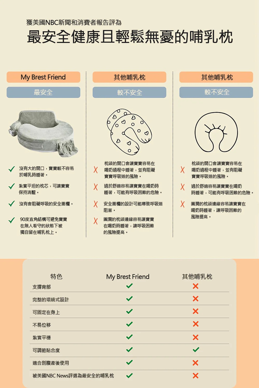 美國消費者報告評選為最安全哺乳枕(無阻礙呼吸護欄設計)
