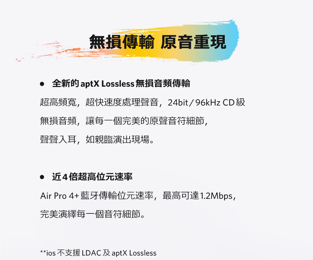 • 高通無損|aptX Lossless 24位元/96kHz音訊