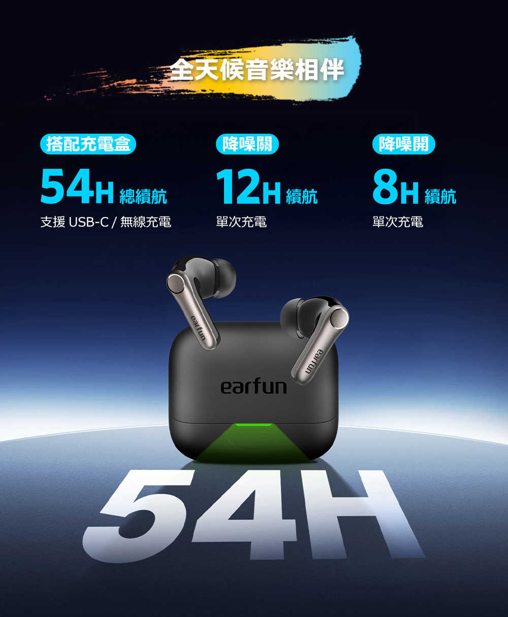 • 長效續航|單次電量12小時,搭充電盒可達54小時