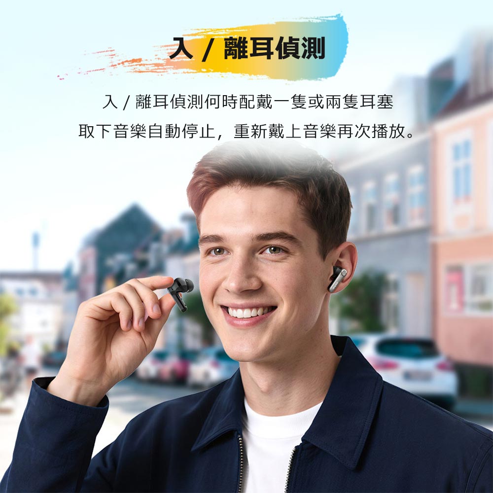 • 離耳偵測|離耳自動暫停,重新戴上再次播放
