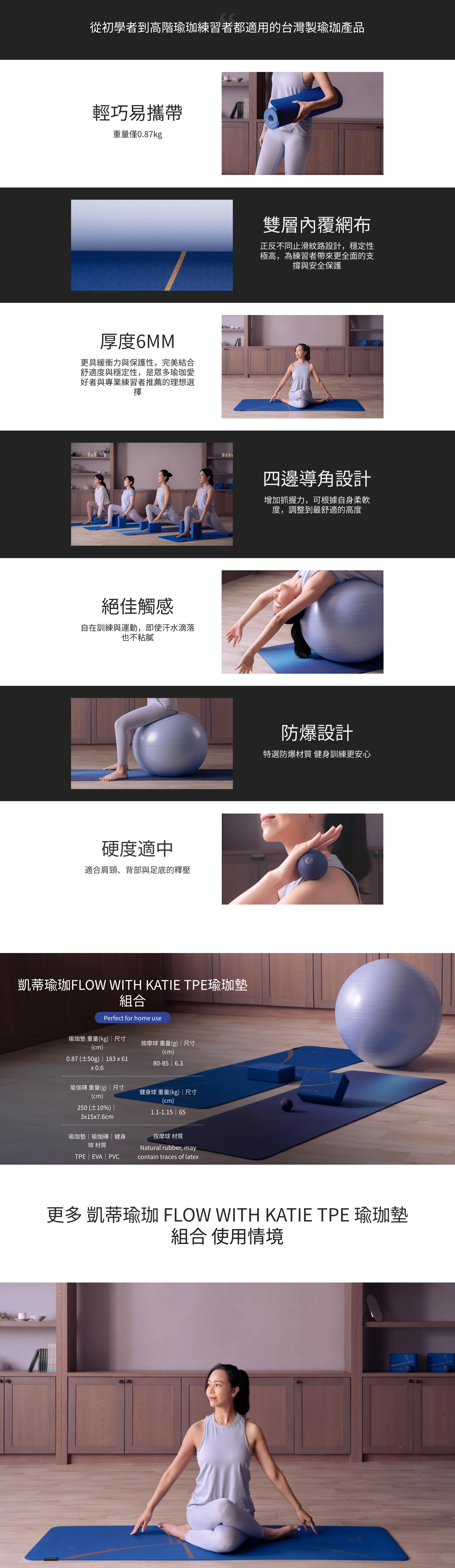 凱蒂瑜珈 Flow With Katie TPE 瑜珈墊組合
