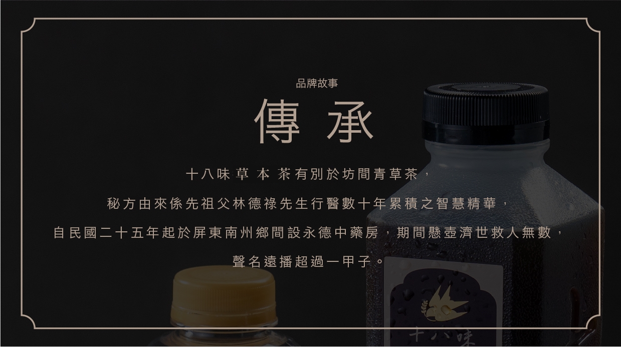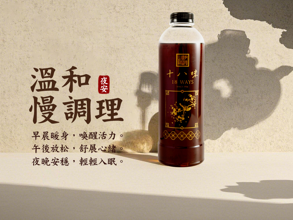 最初供奉於清朝皇室,每個茶包含有十八種好處,由當時的太醫為朝廷特別選配調製