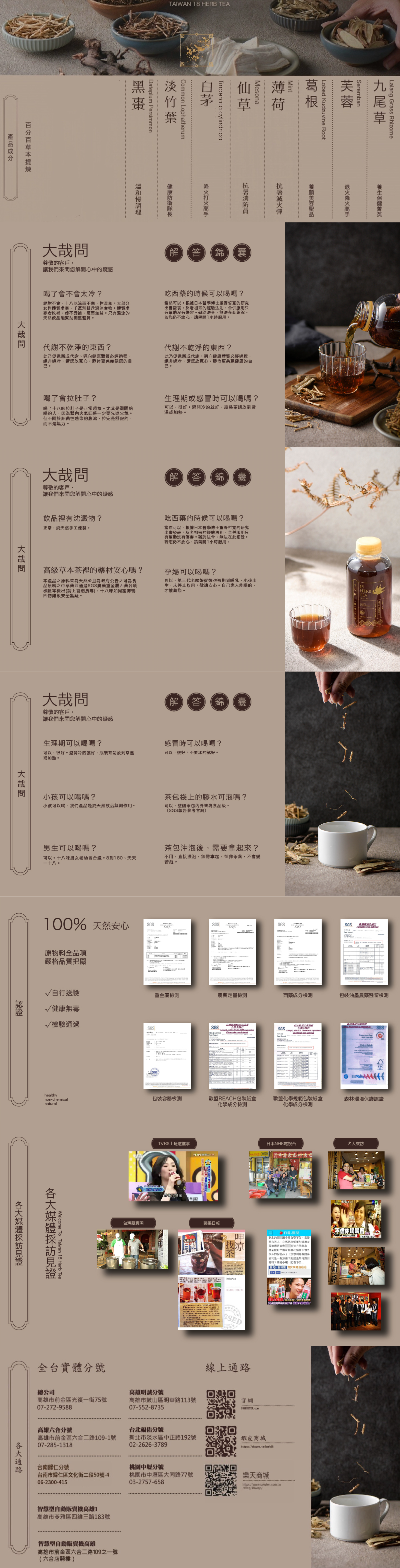 3. 本次體驗方式:到店後介紹現場環境、了解品牌故事、現場試喝體驗,攜回頂級台灣草本茶大瓶茶960ml*1瓶+茶包18入/禮盒裝+茶包10入/盒裝回家開箱體驗,並將飲用後心得分享。