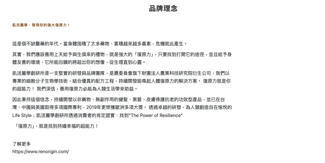 開發喚起人體復原力的非藥物解決方案。期許以科學力、復原力、知識力為核心,開發出一系列功效型產品