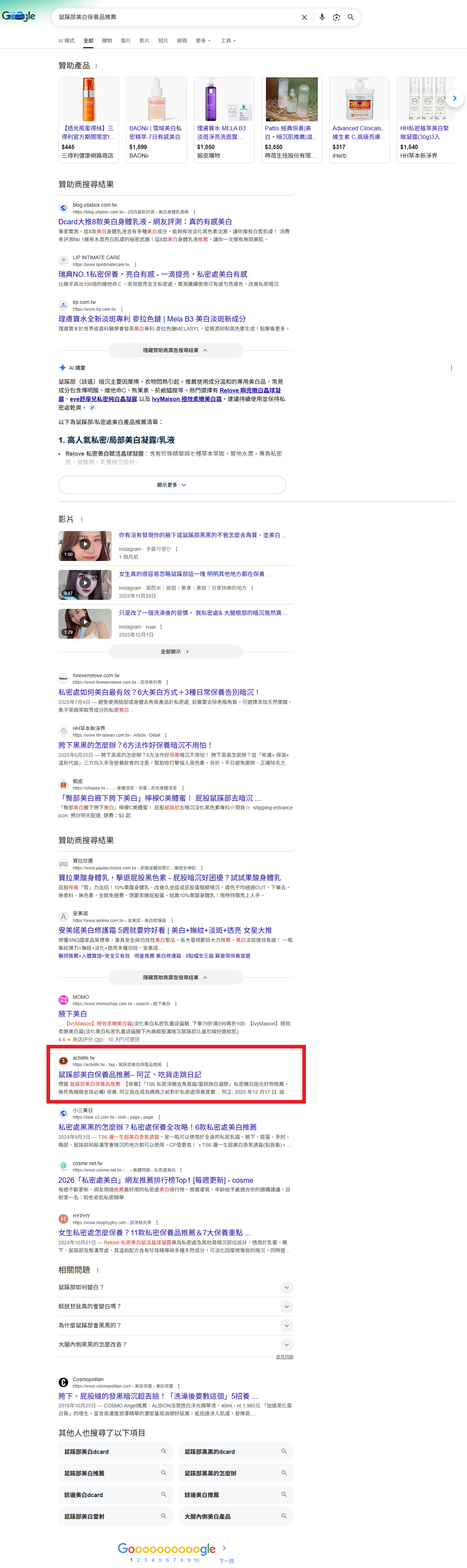 鼠蹊部美白保養品推薦