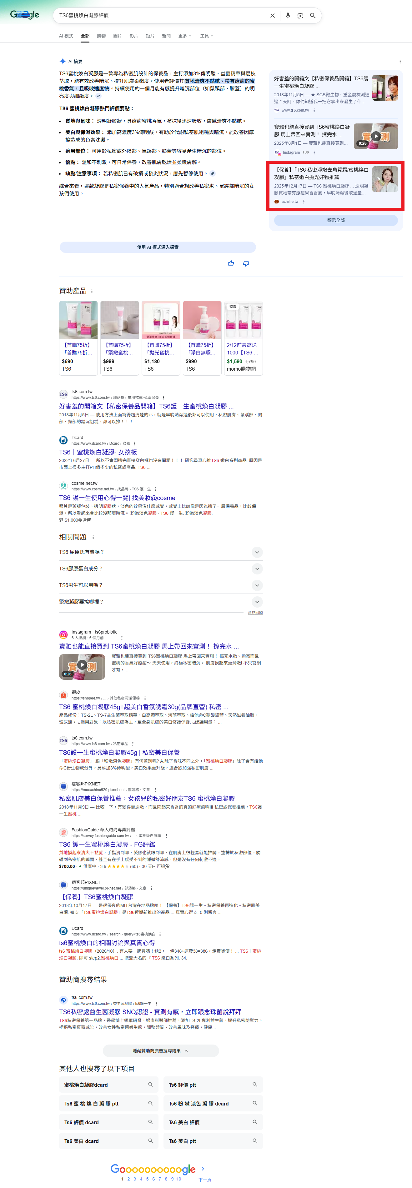 TS6蜜桃煥白凝膠評價