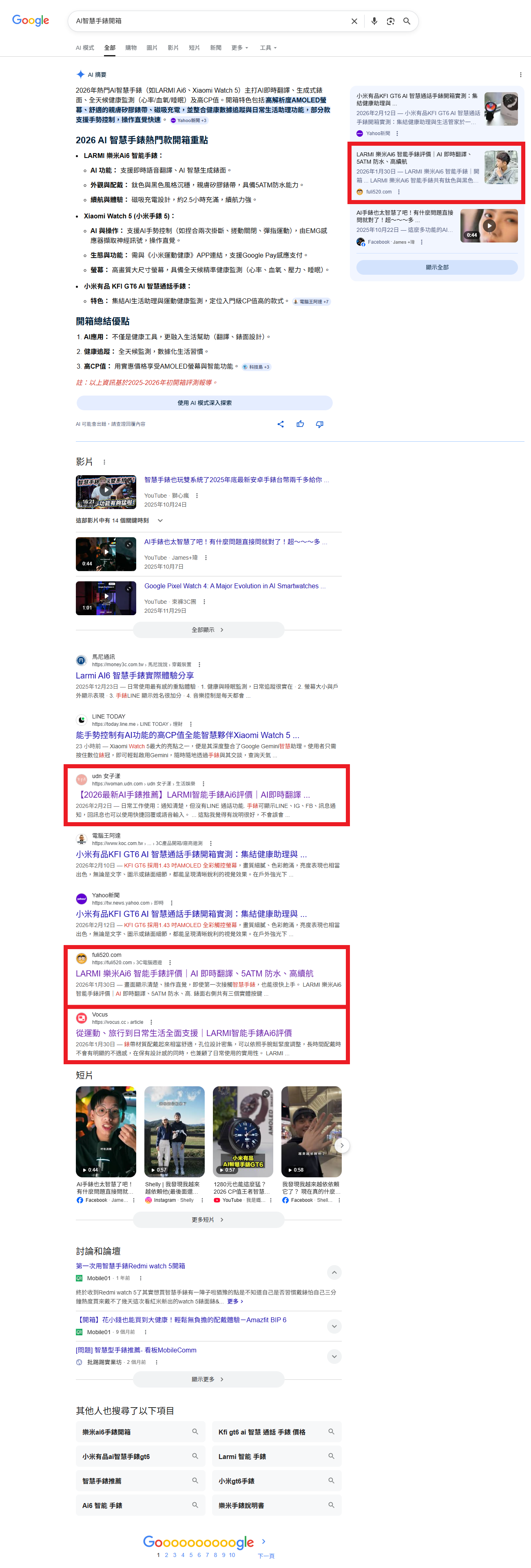 樂米AI手錶 關鍵字搜尋